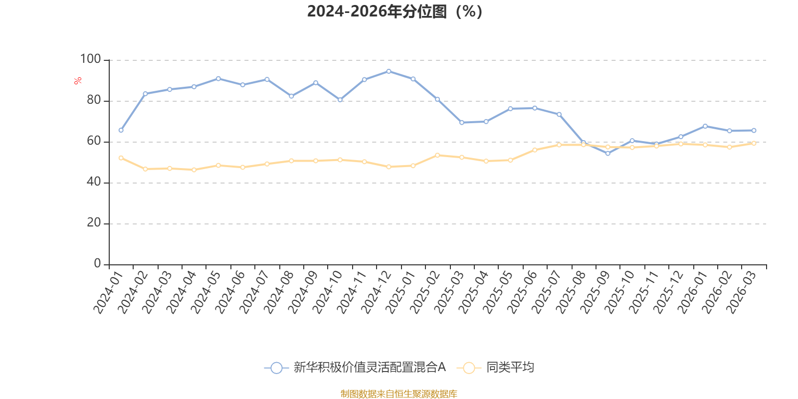 通过所选区间该基金净值增长率分位图,可以观察该基金与同类基金业绩比较情况。图为坐标原点到区间内某时点的净值增长率在同类基金中的分位数。