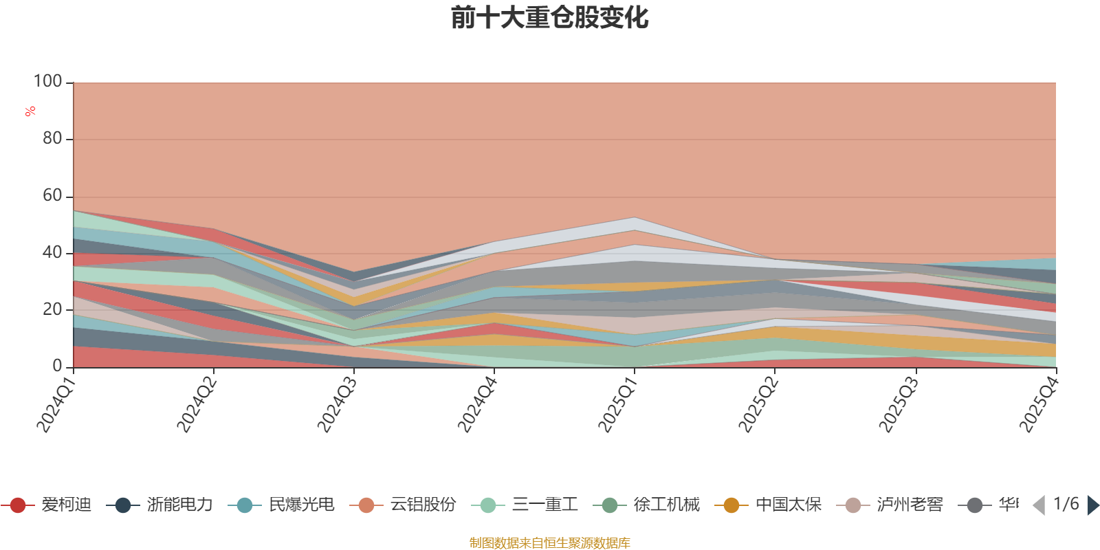 截至2025年末,基金十大重仓股分别是紫金矿业、中国平安、中国太保、海光信息、北方华创、三一重工、华泰证券、寒武纪、广发证券、盐津铺子。