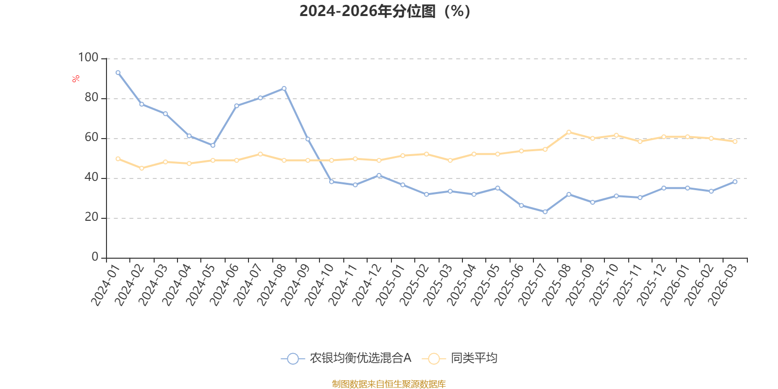 通过所选区间该基金净值增长率分位图,可以观察该基金与同类基金业绩比较情况。图为坐标原点到区间内某时点的净值增长率在同类基金中的分位数。