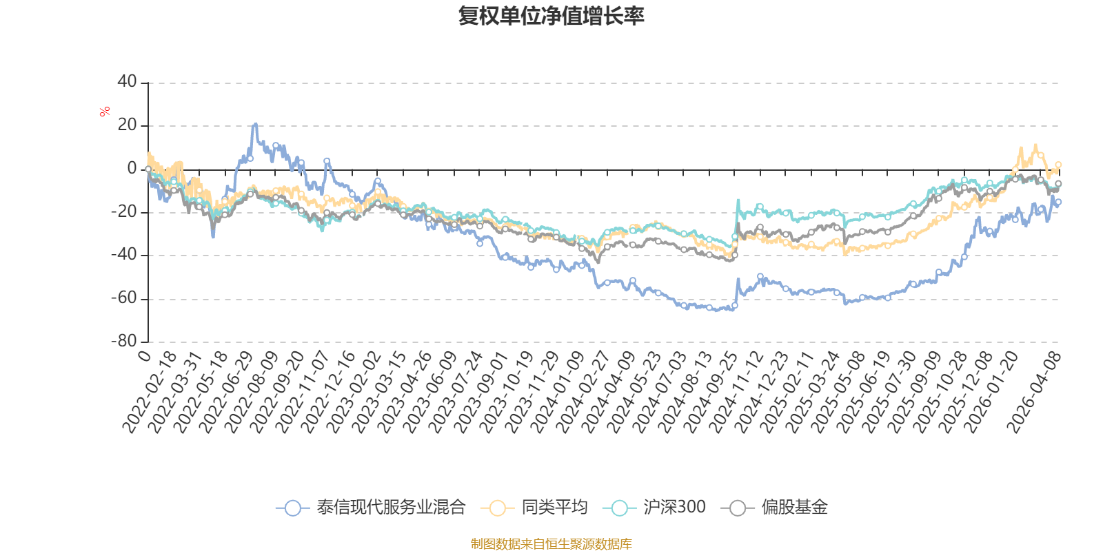 截至4月8日,泰信现代服务业混合近三个月复权单位净值增长率为10.69%,位于同类可比基金19/49;近半年复权单位净值增长率为50.83%,位于同类可比基金1/49;近一年复权单位净值增长率为126.31%,位于同类可比基金3/48;近三年复权单位净值增长率为11.52%,位于同类可比基金24/31。