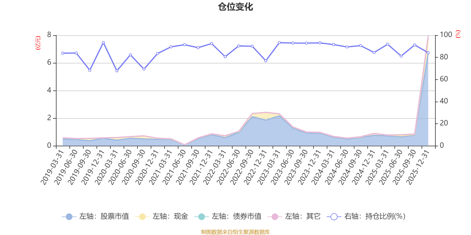 据定期报告数据统计,近三年平均股票仓位为89.74%,同类平均为86.41%。2019年末基金达到93.41%的最高仓位,2020年一季度末最低,为67.83%。