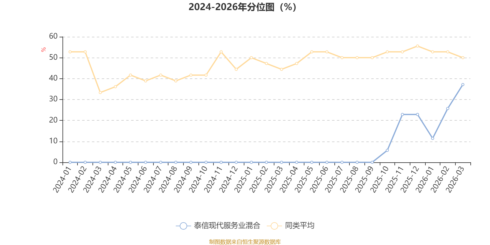 通过所选区间该基金净值增长率分位图,可以观察该基金与同类基金业绩比较情况。图为坐标原点到区间内某时点的净值增长率在同类基金中的分位数。