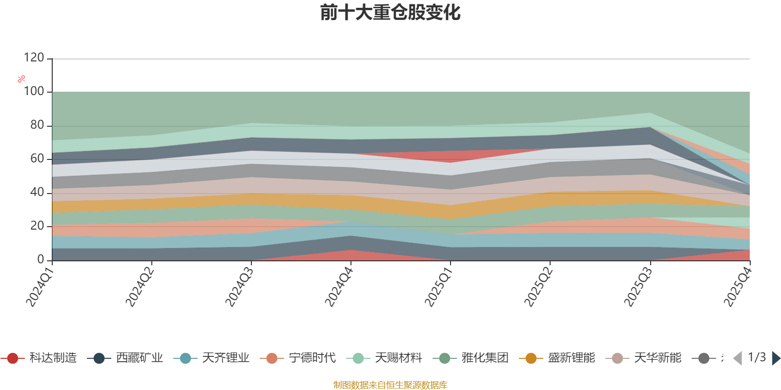 该基金持股集中度较高,且持股标的较为稳定,近2年前十大重仓股集中度长期超过60%。截至2025年末,基金十大重仓股分别是天赐材料、雅化集团、天华新能、厦钨新能、宁德时代、科达制造、当升科技、天齐锂业、亿纬锂能、中矿资源。