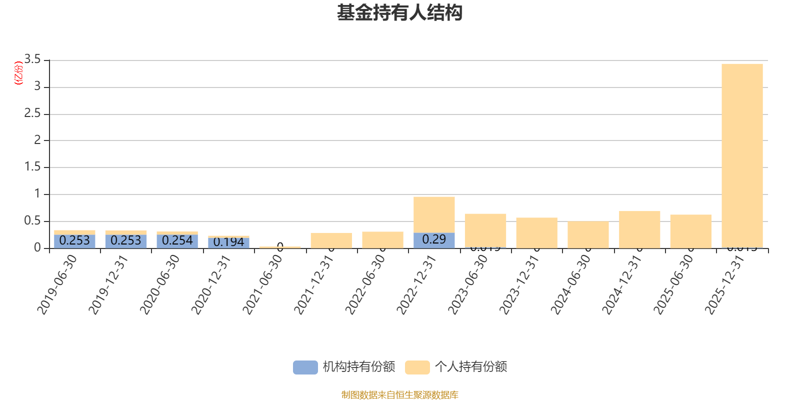 截至2025年12月31日,基金持有人共计7.47万户,合计持有3.43亿份。其中管理人员工持有32.8万份,占比0.10%,机构持有份额占比0.38%,个人投资者占比99.62%。