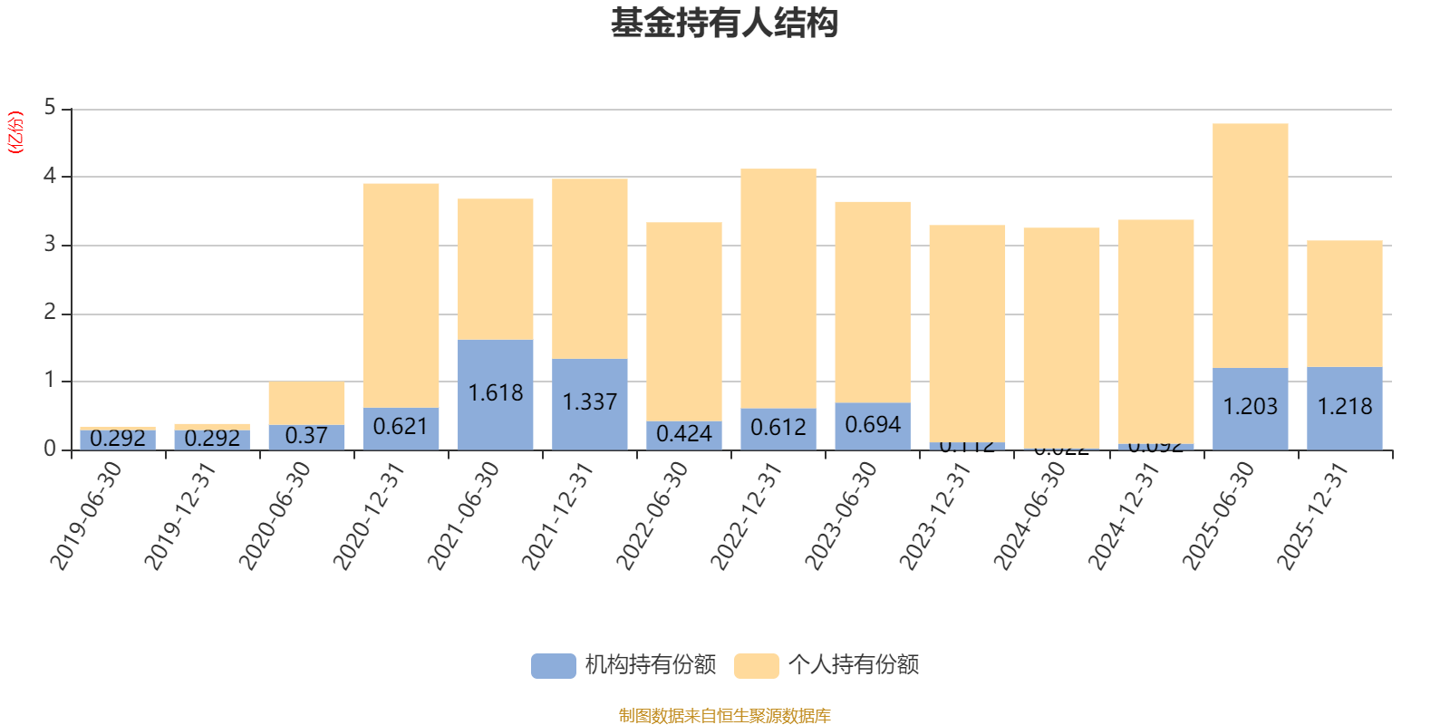 截至2025年12月31日,基金持有人共计6.37万户,合计持有3.07亿份。其中管理人员工持有52.13万份,占比0.17%,机构持有份额占比39.67%,个人投资者占比60.33%。