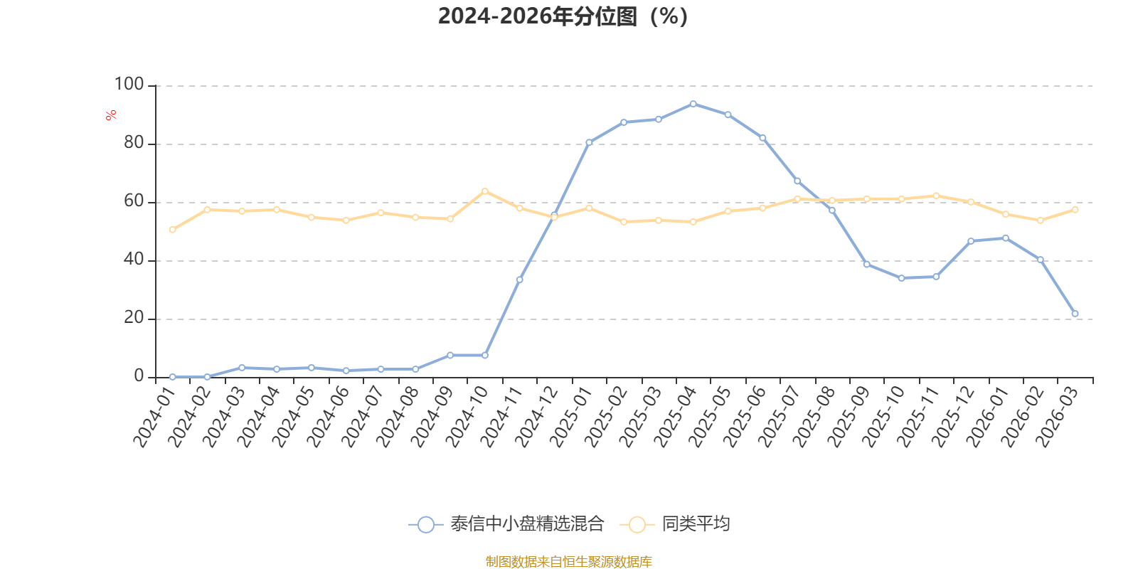 通过所选区间该基金净值增长率分位图,可以观察该基金与同类基金业绩比较情况。图为坐标原点到区间内某时点的净值增长率在同类基金中的分位数。