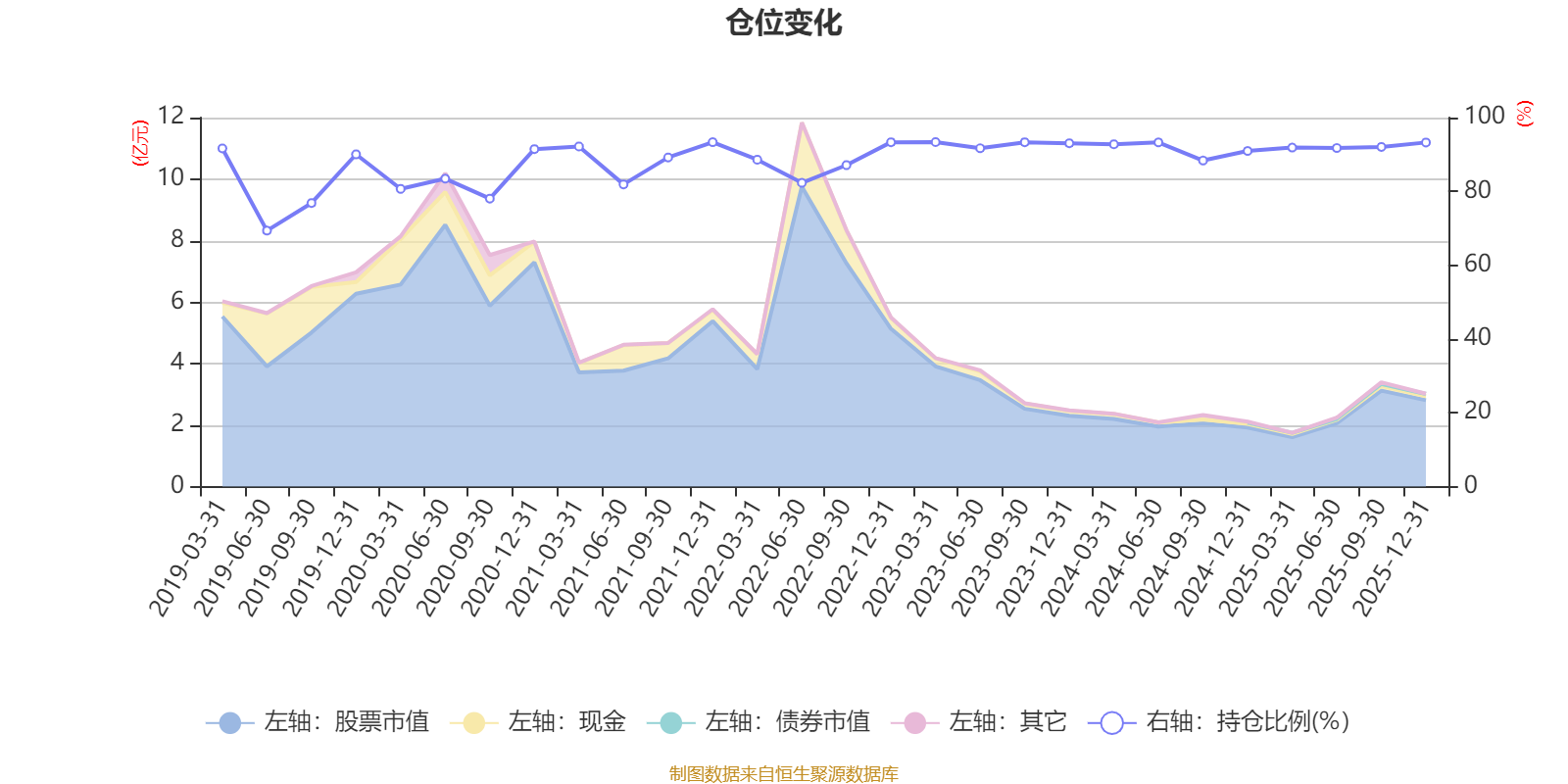 据定期报告数据统计,近三年平均股票仓位为92.14%,同类平均为85.83%。2023年一季度末基金达到93.37%的最高仓位,2019年上半年末最低,为69.36%。