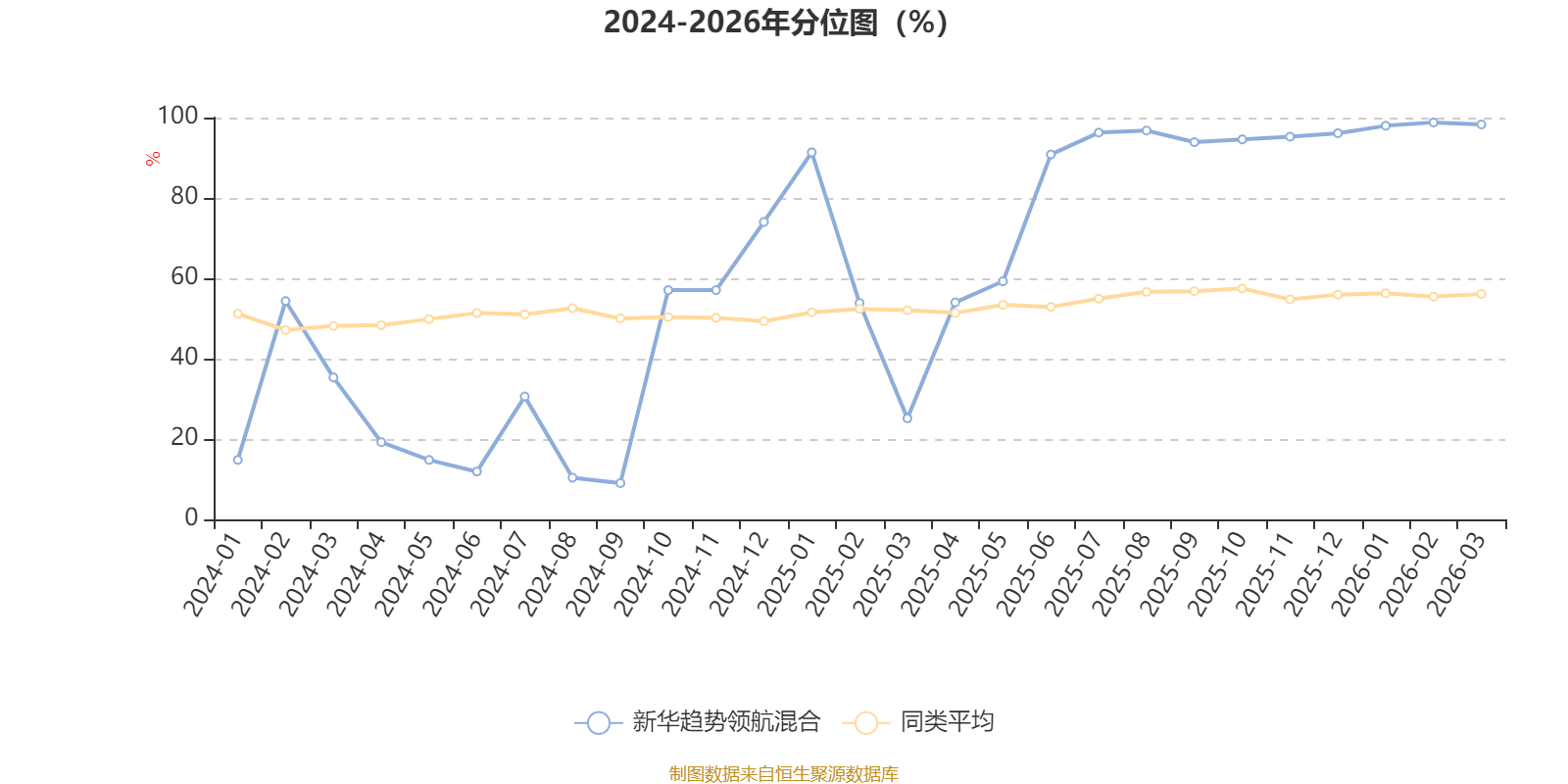 通过所选区间该基金净值增长率分位图,可以观察该基金与同类基金业绩比较情况。图为坐标原点到区间内某时点的净值增长率在同类基金中的分位数。