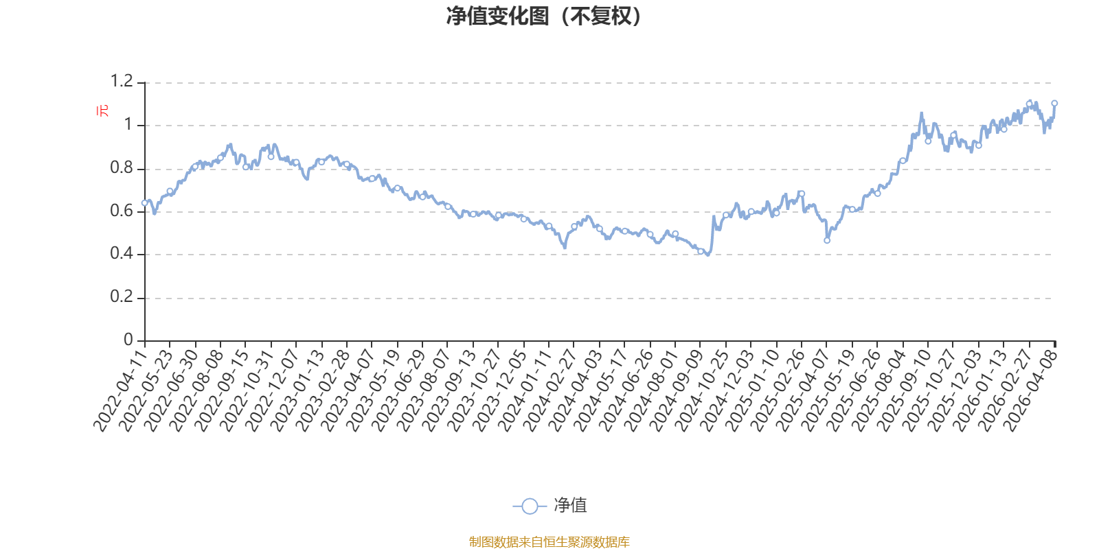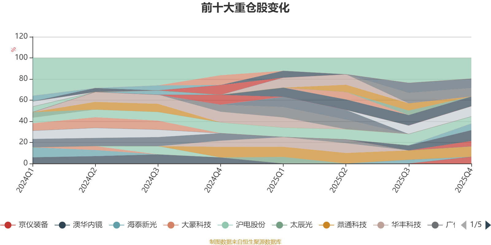 该基金持股集中度较高,近2年前十大重仓股集中度长期超过60%。截至2025年末,基金十大重仓股分别是汇绿生态、鼎通科技、若羽臣、德科立、华峰测控、迈威生物、源杰科技、京仪装备、中石科技、威尔高。