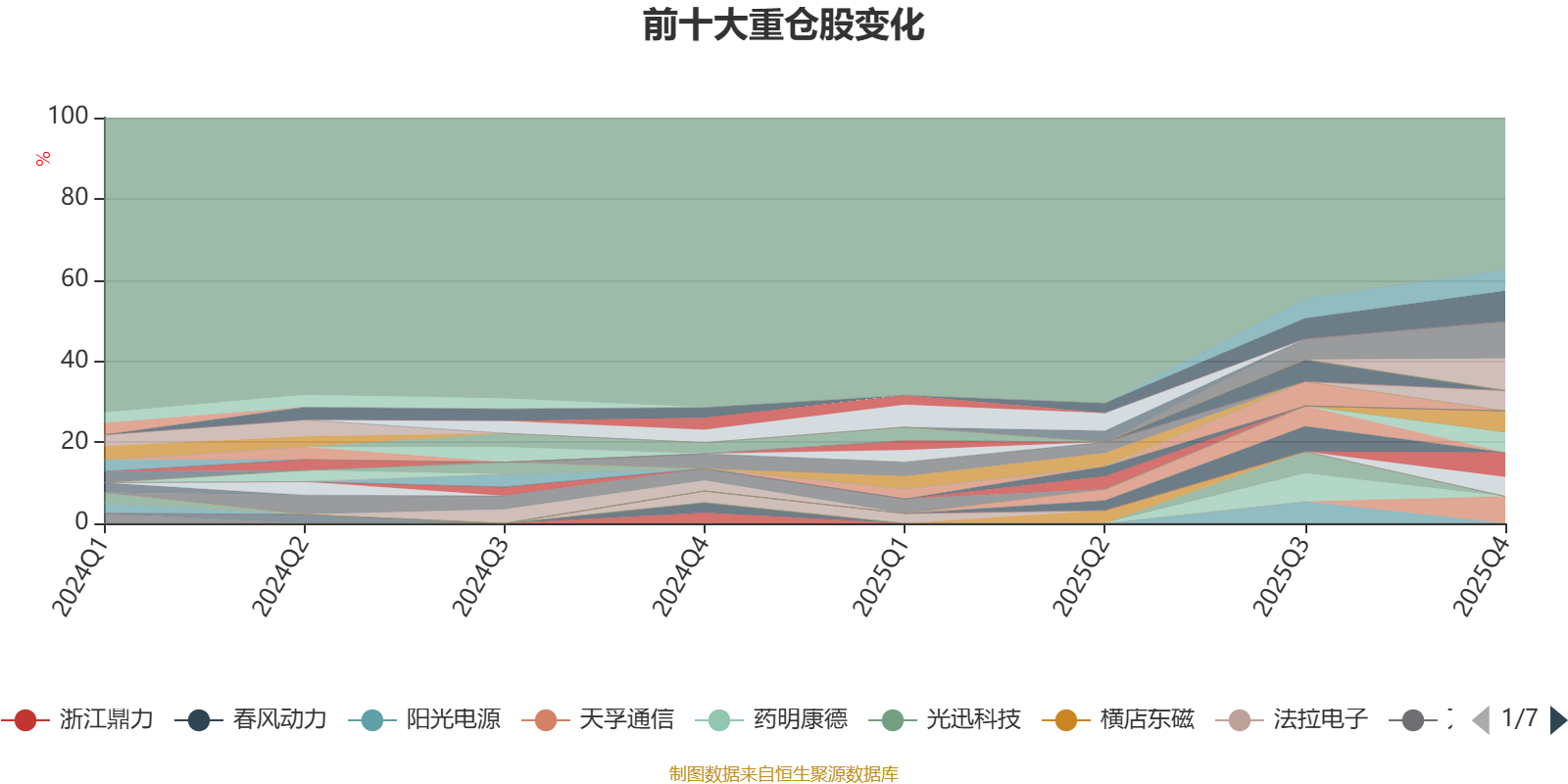 截至2025年末,基金十大重仓股分别是生益科技、中际旭创、胜宏科技、天孚通信、长川科技、工业富联、厦钨新能、新易盛、生益电子、当升科技。