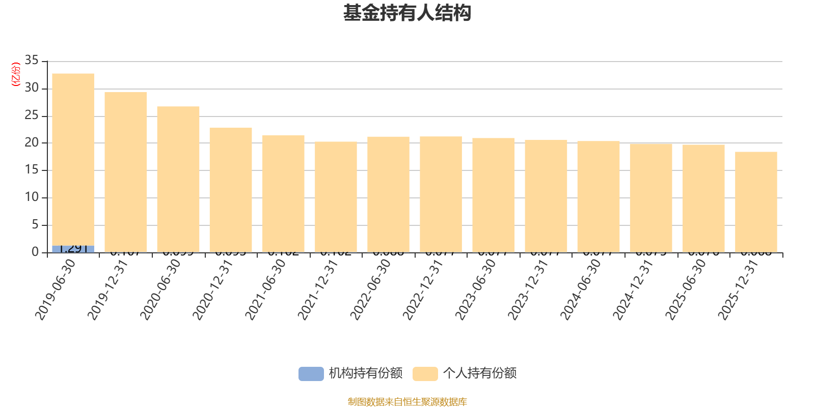 截至2025年12月31日,基金持有人共计11.53万户,合计持有18.4亿份。其中管理人员工持有52.37万份,占比0.03%,机构持有份额占比0.37%,个人投资者占比99.63%。