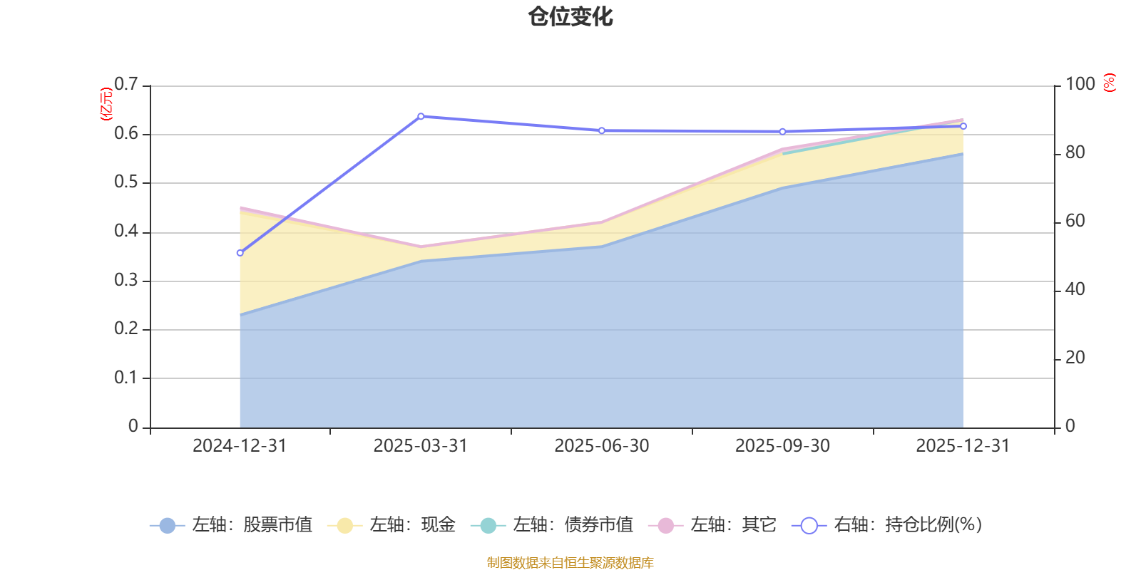据定期报告数据统计,成立以来平均股票仓位为80.69%,同类平均为84.04%。2025年一季度末基金达到90.99%的最高仓位,2024年末最低,为51.06%。