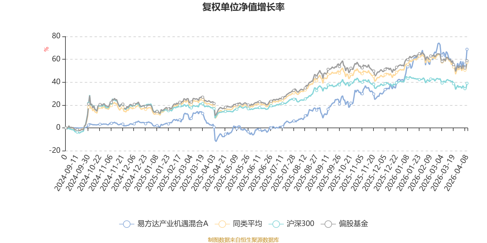 截至4月8日,易方达产业机遇混合A近三个月复权单位净值增长率为9.95%,位于同类可比基金63/689;近半年复权单位净值增长率为32.77%,位于同类可比基金22/689;近一年复权单位净值增长率为91.54%,位于同类可比基金49/685。