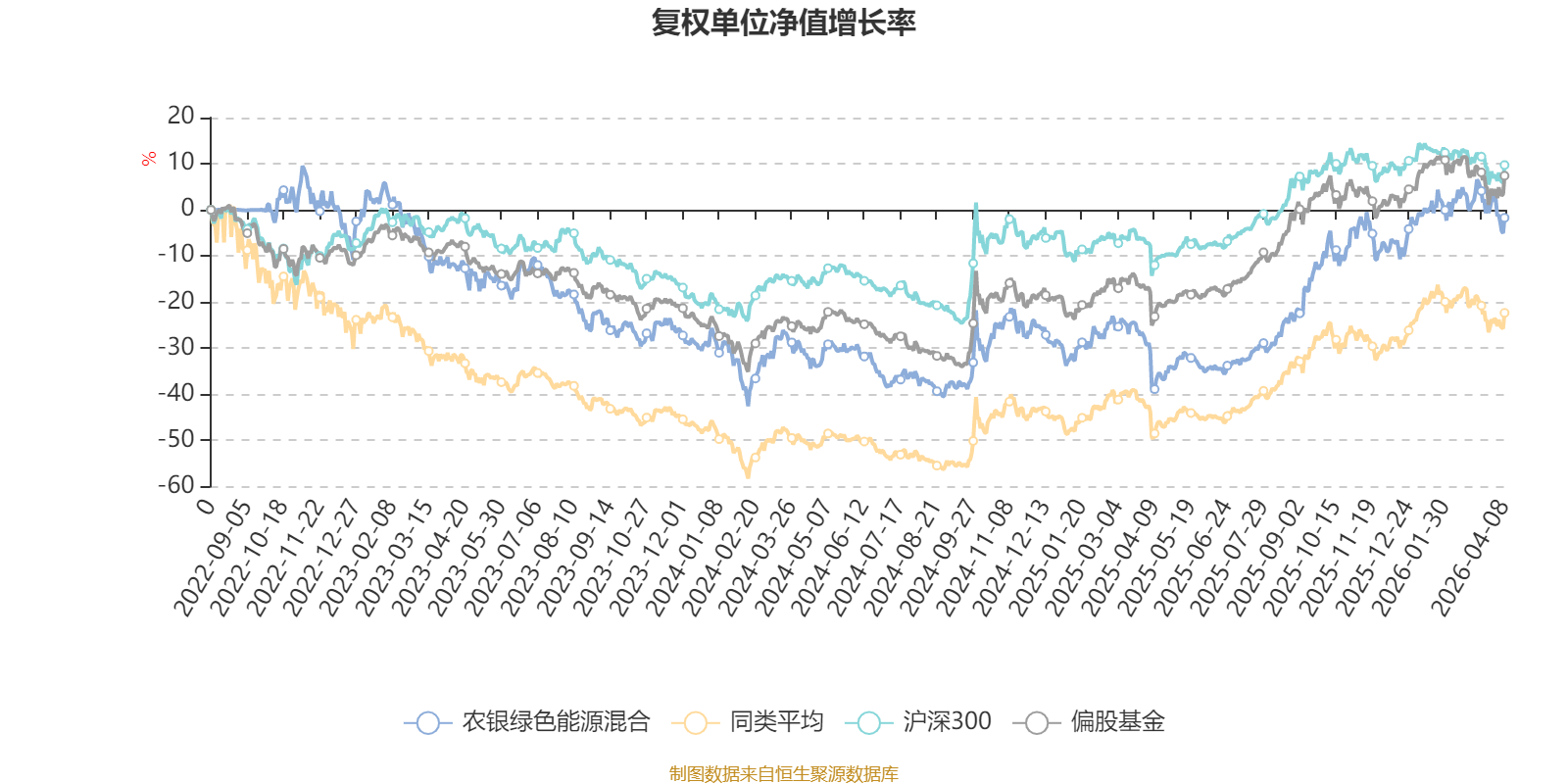 截至4月8日,农银绿色能源混合近三个月复权单位净值增长率为-0.41%,位于同类可比基金46/100;近半年复权单位净值增长率为4.08%,位于同类可比基金31/100;近一年复权单位净值增长率为62.70%,位于同类可比基金22/99;近三年复权单位净值增长率为11.40%,位于同类可比基金41/76。