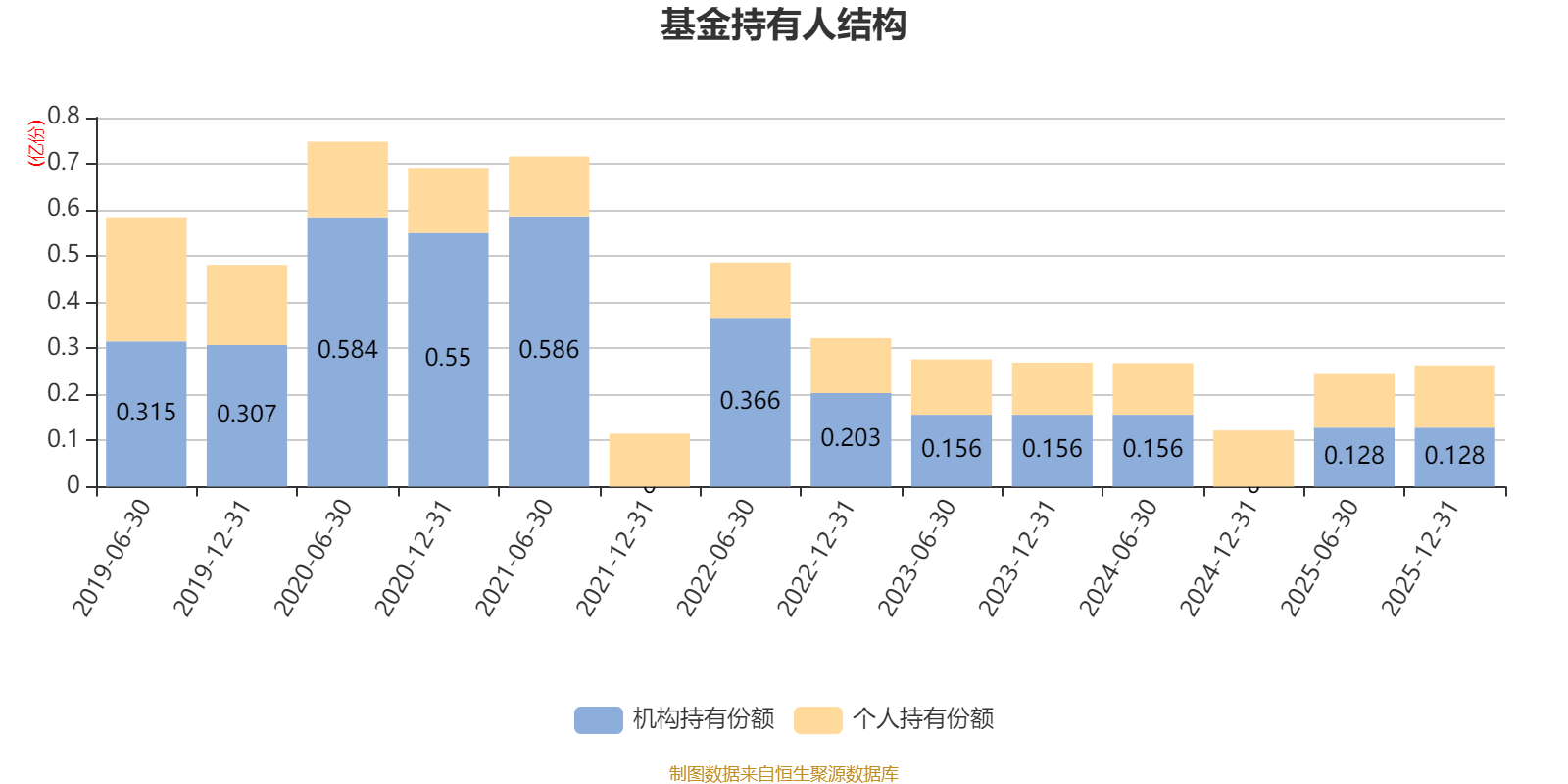 截至2025年12月31日,基金持有人共计3472户,合计持有2631.08万份。其中管理人员工持有28.84万份,占比1.10%,机构持有份额占比48.69%,个人投资者占比51.31%。