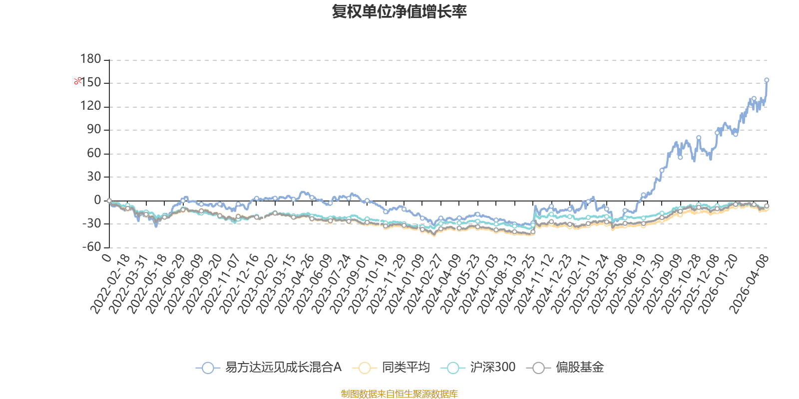 截至4月8日,易方达远见成长混合A近三个月复权单位净值增长率为33.21%,位于同类可比基金1/185;近半年复权单位净值增长率为49.45%,位于同类可比基金1/185;近一年复权单位净值增长率为252.42%,位于同类可比基金1/185;近三年复权单位净值增长率为128.48%,位于同类可比基金1/177。