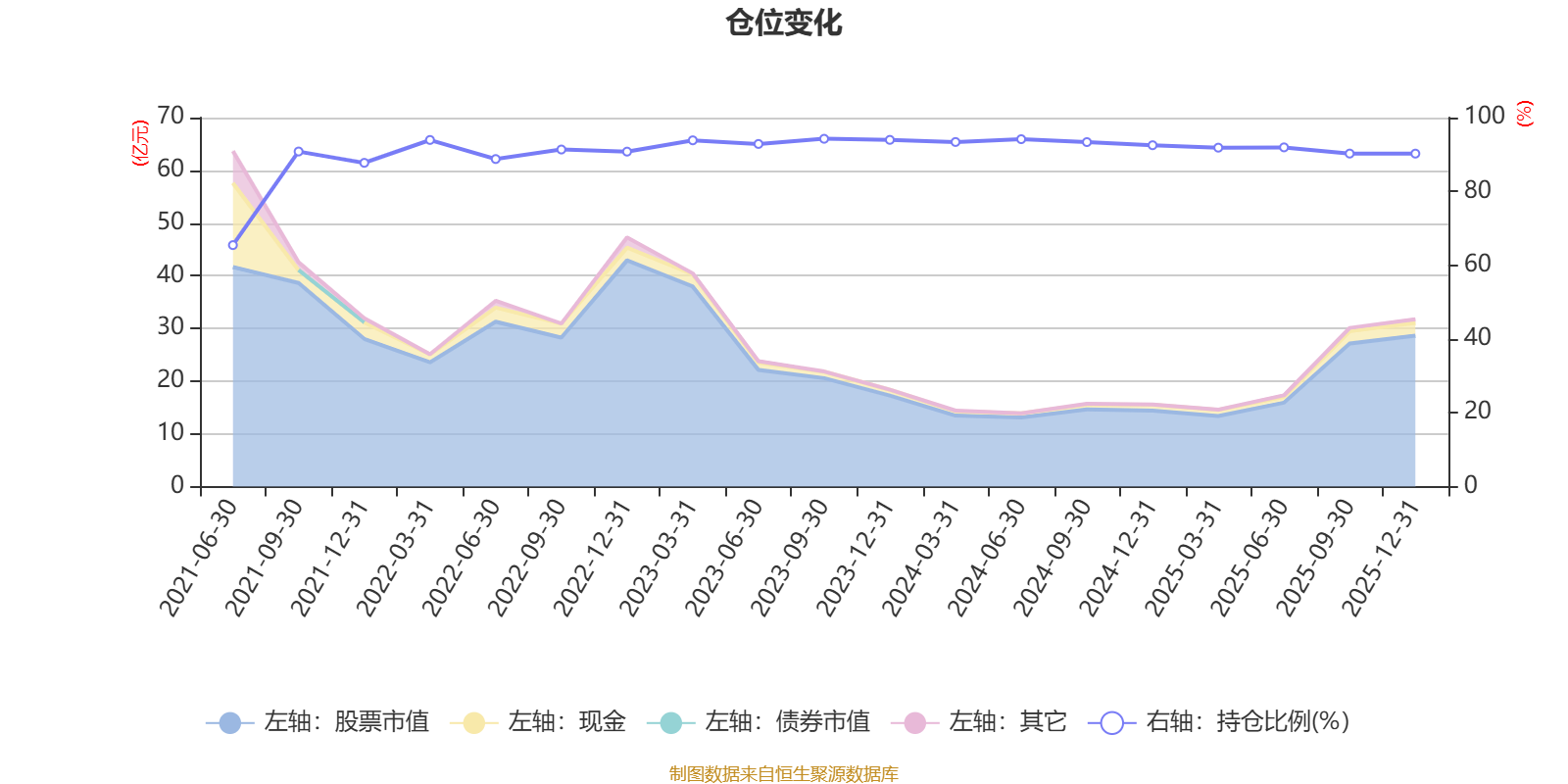据定期报告数据统计,近三年平均股票仓位为92.72%,同类平均为87.64%。2023年三季度末基金达到94.26%的最高仓位,2021年上半年末最低,为65.44%。
