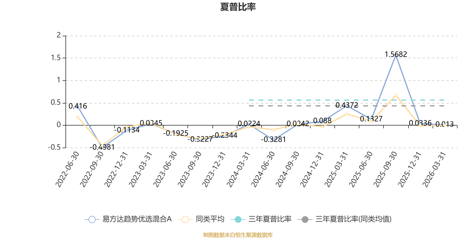 截至3月31日,基金近三年夏普比率为0.5627,位于同类可比基金144/393。