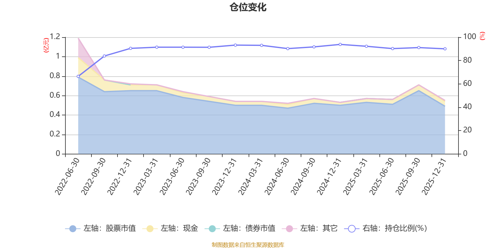 据定期报告数据统计,近三年平均股票仓位为91.66%,同类平均为84.04%。2024年末基金达到93.83%的最高仓位,2022年上半年末最低,为66.45%。