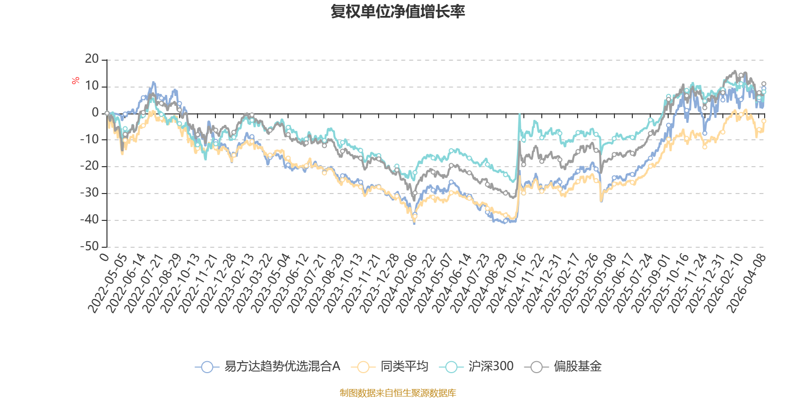 该基金属于偏股混合型基金。截至4月8日,单位净值为1.093元。基金经理是林海,目前管理的2只基金近一年均为正收益。其中,截至4月8日,易方达趋势优选混合A近一年复权单位净值增长率最高,达63.58%;易方达价值成长混合最低,为55.71%。