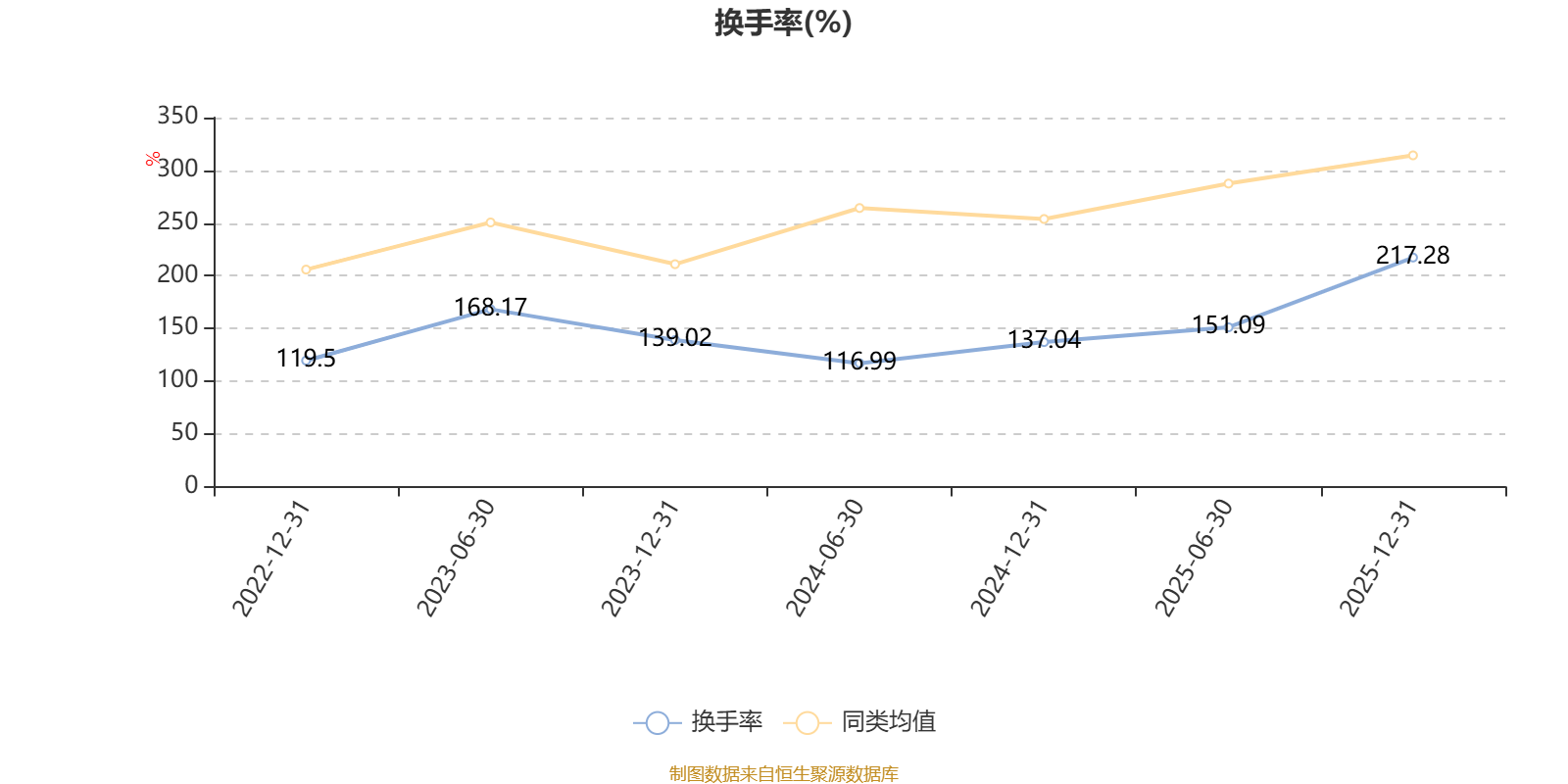 截至2025年12月31日,基金最近一年换手率约367.42%,持续低于同类均值。