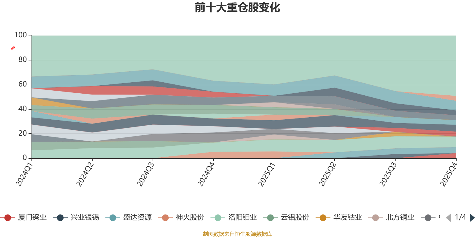 该基金持股集中度较高。截至2025年末,基金十大重仓股分别是洛阳钼业、紫金矿业、中金黄金、盛达资源、厦门钨业、江西铜业、宏桥控股、招商轮船、赤峰黄金、铜陵有色。