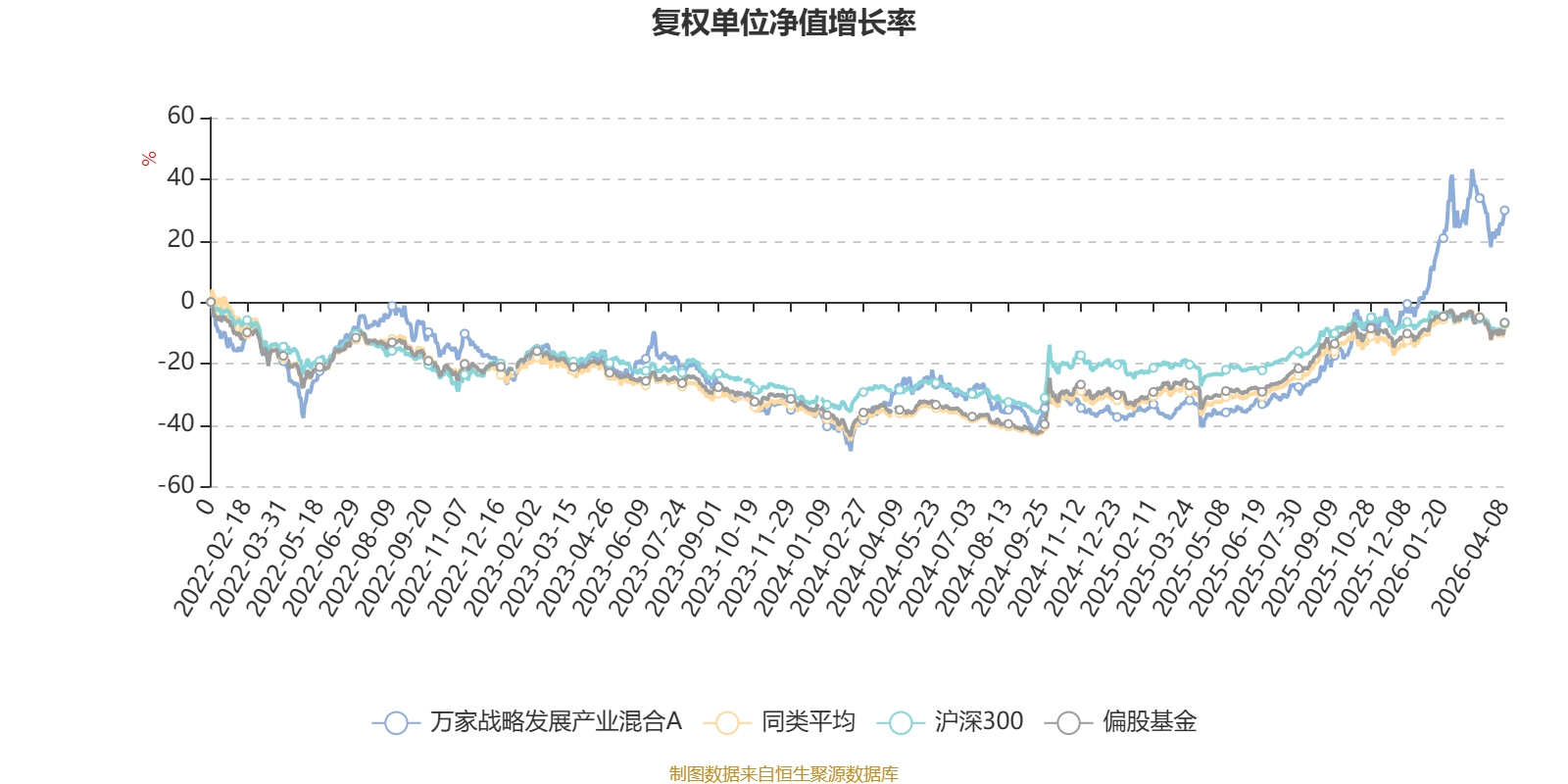 截至4月8日,万家战略发展产业混合A近三个月复权单位净值增长率为17.83%,位于同类可比基金3/265;近半年复权单位净值增长率为42.29%,位于同类可比基金1/265;近一年复权单位净值增长率为117.72%,位于同类可比基金5/265;近三年复权单位净值增长率为54.93%,位于同类可比基金12/261。