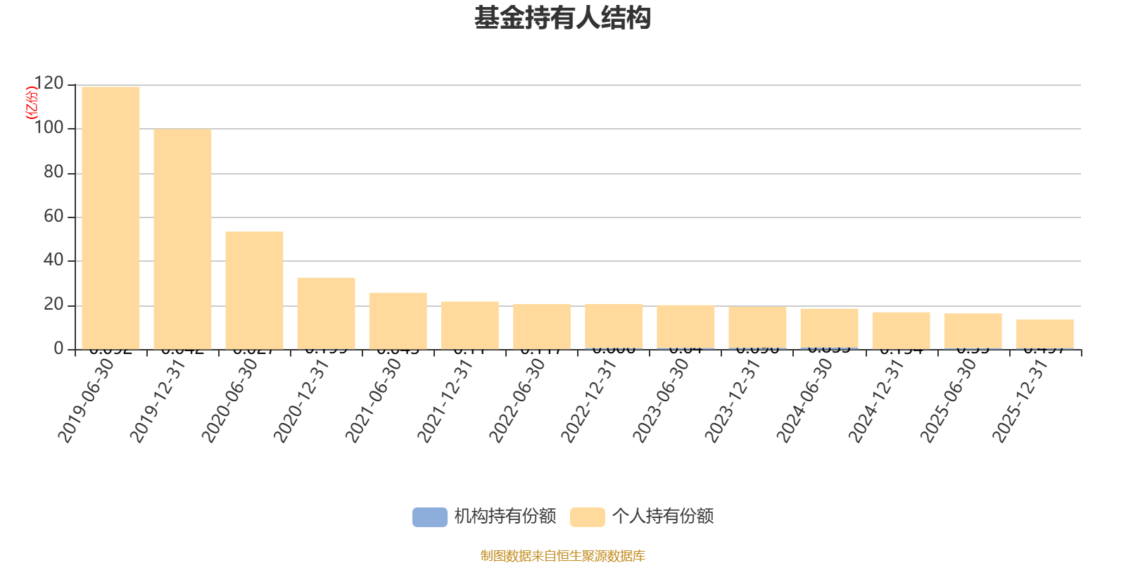 截至2025年12月31日,基金持有人共计4.78万户,合计持有13.54亿份。其中管理人员工持有24.39万份,占比0.02%,机构持有份额占比3.67%,个人投资者占比96.33%。