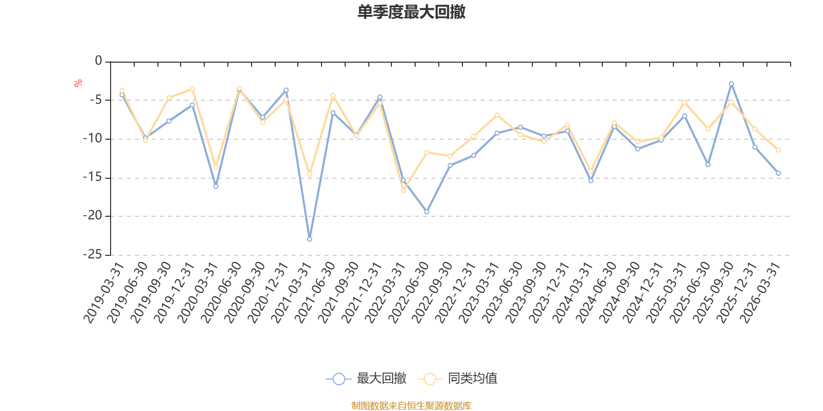 截至4月8日,基金近三年最大回撤为25.19%,同类可比基金排名432/1264。单季度最大回撤出现在2021年一季度,为22.95%。