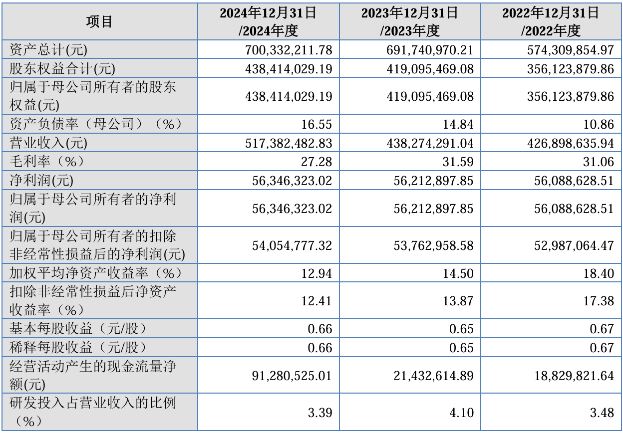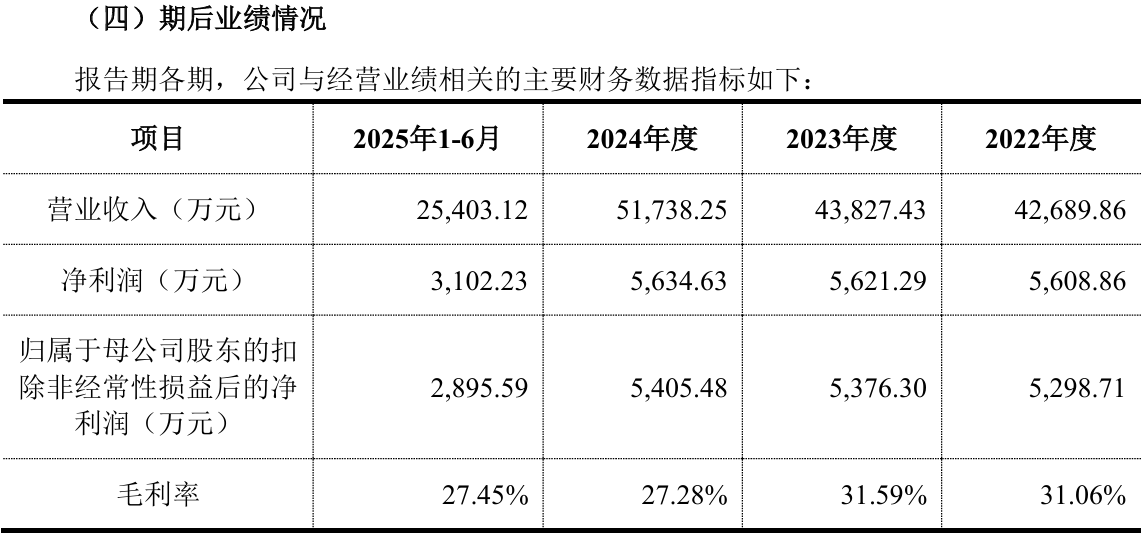 吉和昌的利润表呈现出一种规模扩张与盈利质量的明显背离。2024年,公司营业收入同比增长18.05%,突破5亿元关口,但扣非后归母净利润仅微增0.54%,几乎陷入原地踏步的泥淖。过去三年,公司扣非净利润始终停滞在5300万至5400万元的区间。2025年上半年,公司更是出现了营收与净利润的双降。增收不增利的核心原因,在于主打产品单价的大幅下挫。