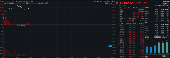 其他多只券商股也普遍大涨,其中互联网券商龙头东方财富盘中一度大涨近8%,盘中股价重回20元以上,长江证券、兴业证券盘中涨幅超过6%。