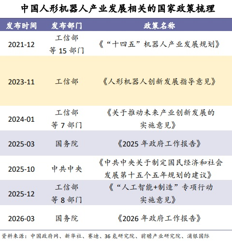 2025年3月,“具身智能”首次被写入政府工作报告,明确被列为未来产业培育方向,标志着其正式上升为国家战略。2025年10月,“十五五”规划建议将具身智能纳入未来产业体系,将其视为培育新质生产力、塑造未来竞争优势的关键引擎之一。2026年,“具身智能”再次被写入政府工作报告。
