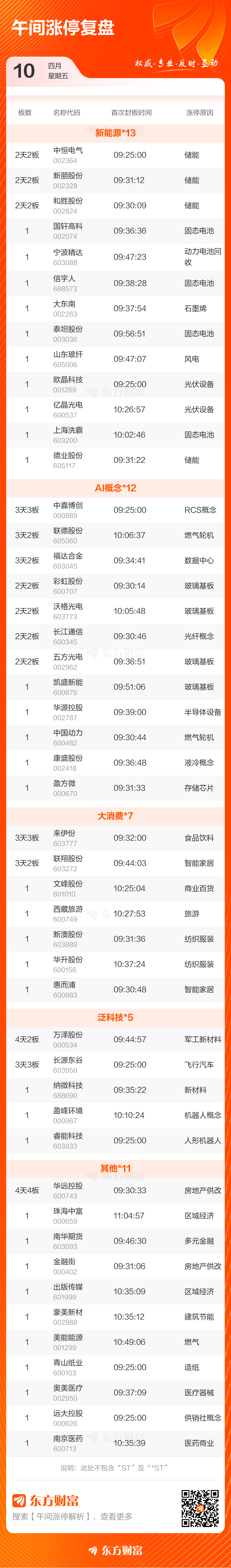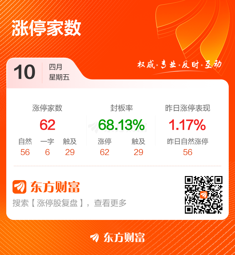 4月10日午间涨停复盘:62股涨停 中恒电气2天2板
