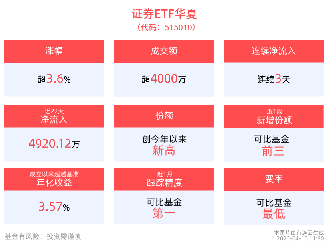 盈利估值错配,证券ETF华夏(515010)涨超3.6%,牛市旗手回归