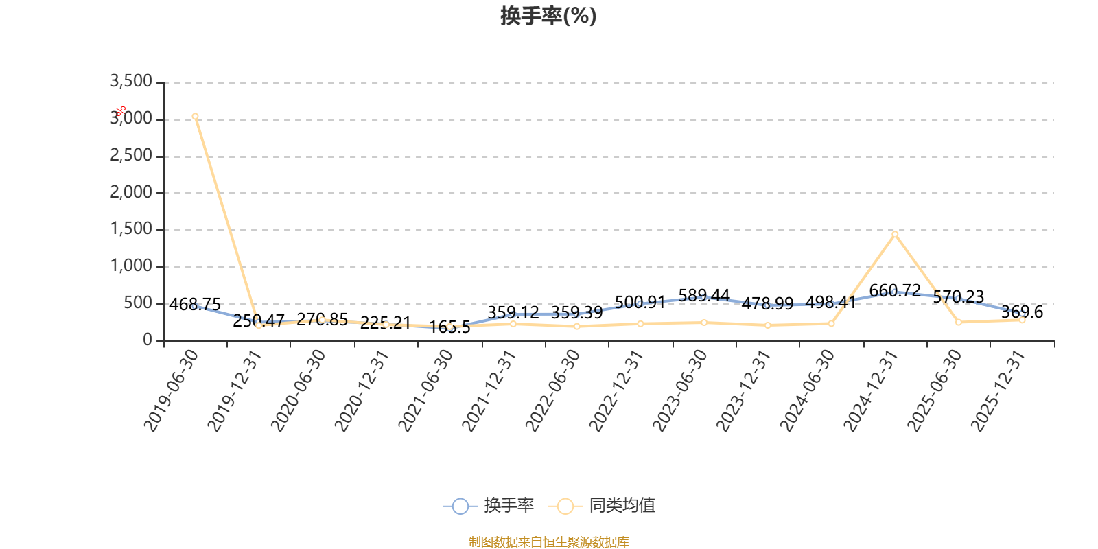 截至2025年12月31日,基金最近一年换手率约829.74%,持续1年高于同类均值。