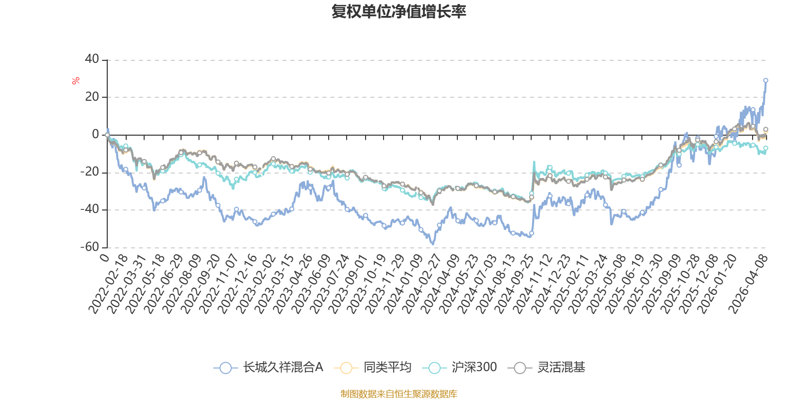 截至4月8日,长城久祥混合A近三个月复权单位净值增长率为28.37%,位于同类可比基金7/1287;近半年复权单位净值增长率为32.38%,位于同类可比基金30/1286;近一年复权单位净值增长率为146.94%,位于同类可比基金20/1286;近三年复权单位净值增长率为72.14%,位于同类可比基金64/1286。