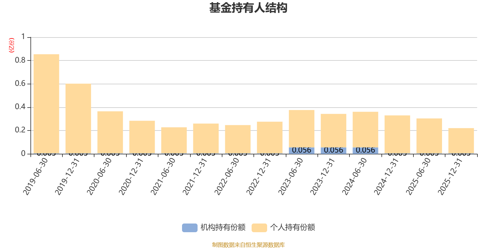截至2025年12月31日,基金持有人共计1964户,合计持有2203.95万份。其中管理人员工持有35.88万份,占比1.63%,机构持有份额占比2.05%,个人投资者占比97.95%。
