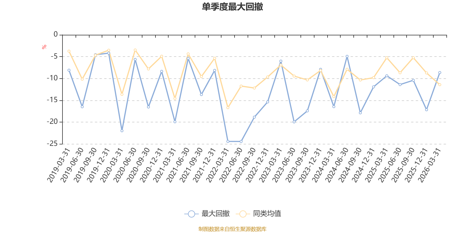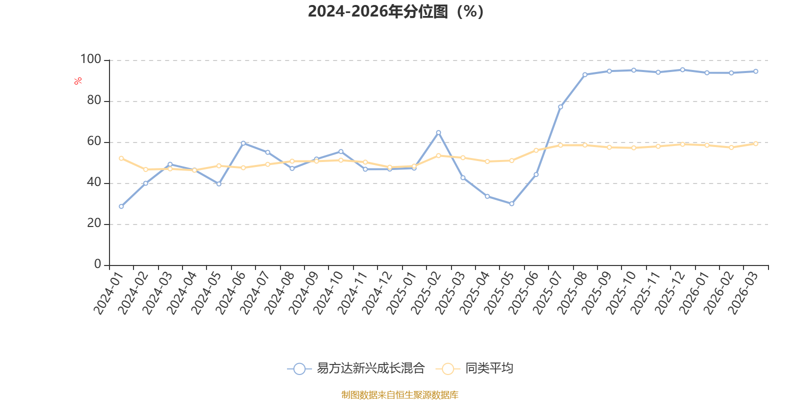 通过所选区间该基金净值增长率分位图,可以观察该基金与同类基金业绩比较情况。图为坐标原点到区间内某时点的净值增长率在同类基金中的分位数。