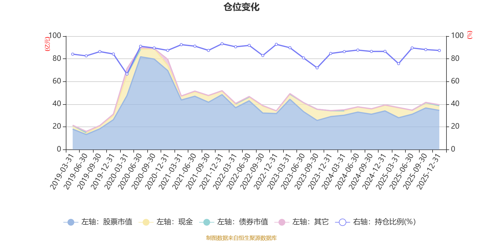 据定期报告数据统计,近三年平均股票仓位为84.63%,同类平均为72.57%。2021年末基金达到93.3%的最高仓位,2020年一季度末最低,为66.59%。