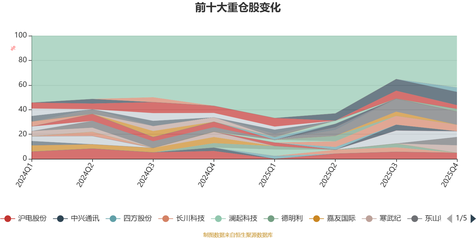 截至2025年末,基金十大重仓股分别是中际旭创、新易盛、东山精密、寒武纪、深南电路、沪电股份、工业富联、世运电路、立讯精密、华峰测控。
