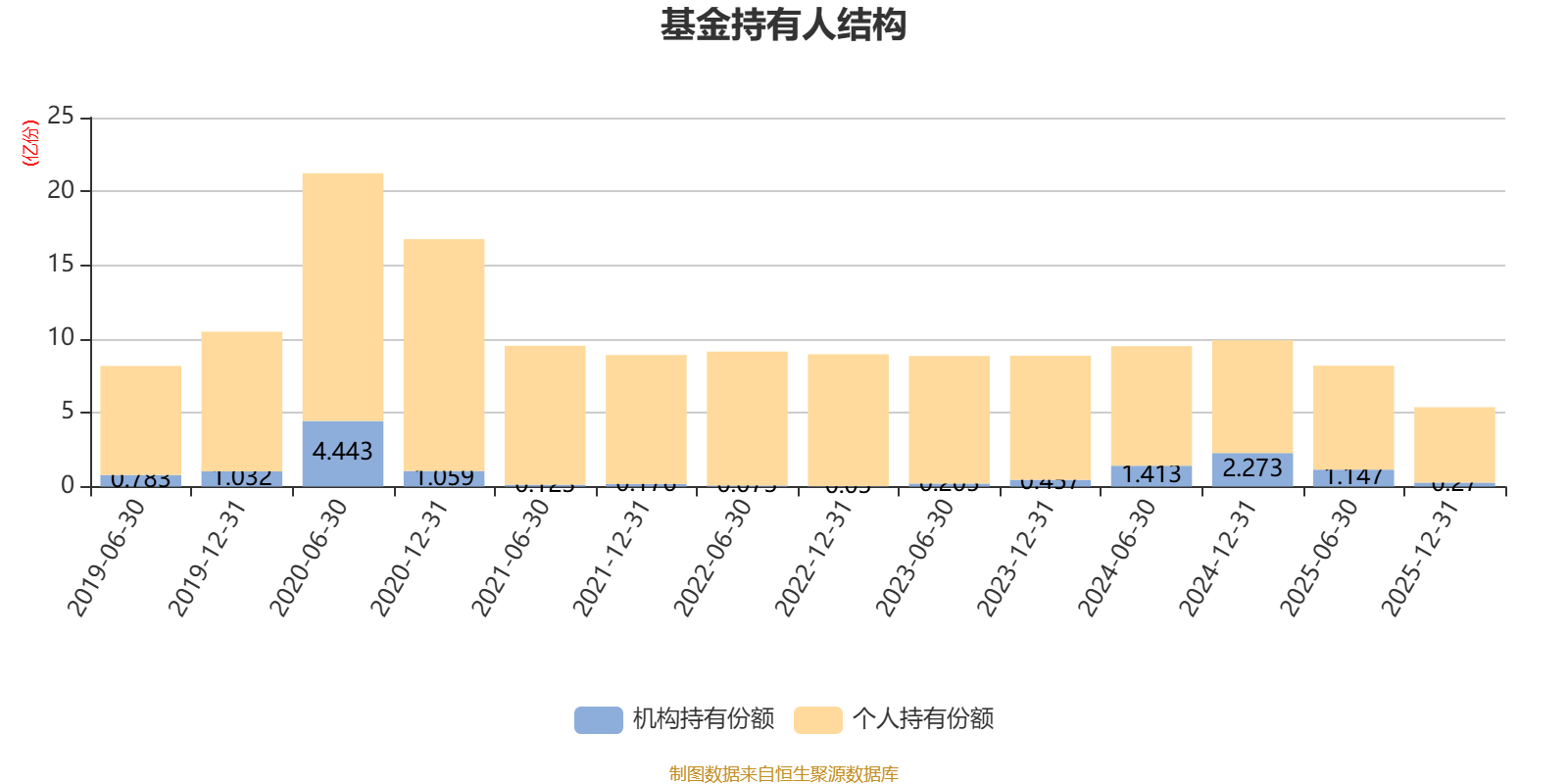 截至2025年12月31日,基金持有人共计8.94万户,合计持有5.38亿份。其中管理人员工持有69.01万份,占比0.13%,机构持有份额占比5.02%,个人投资者占比94.98%。