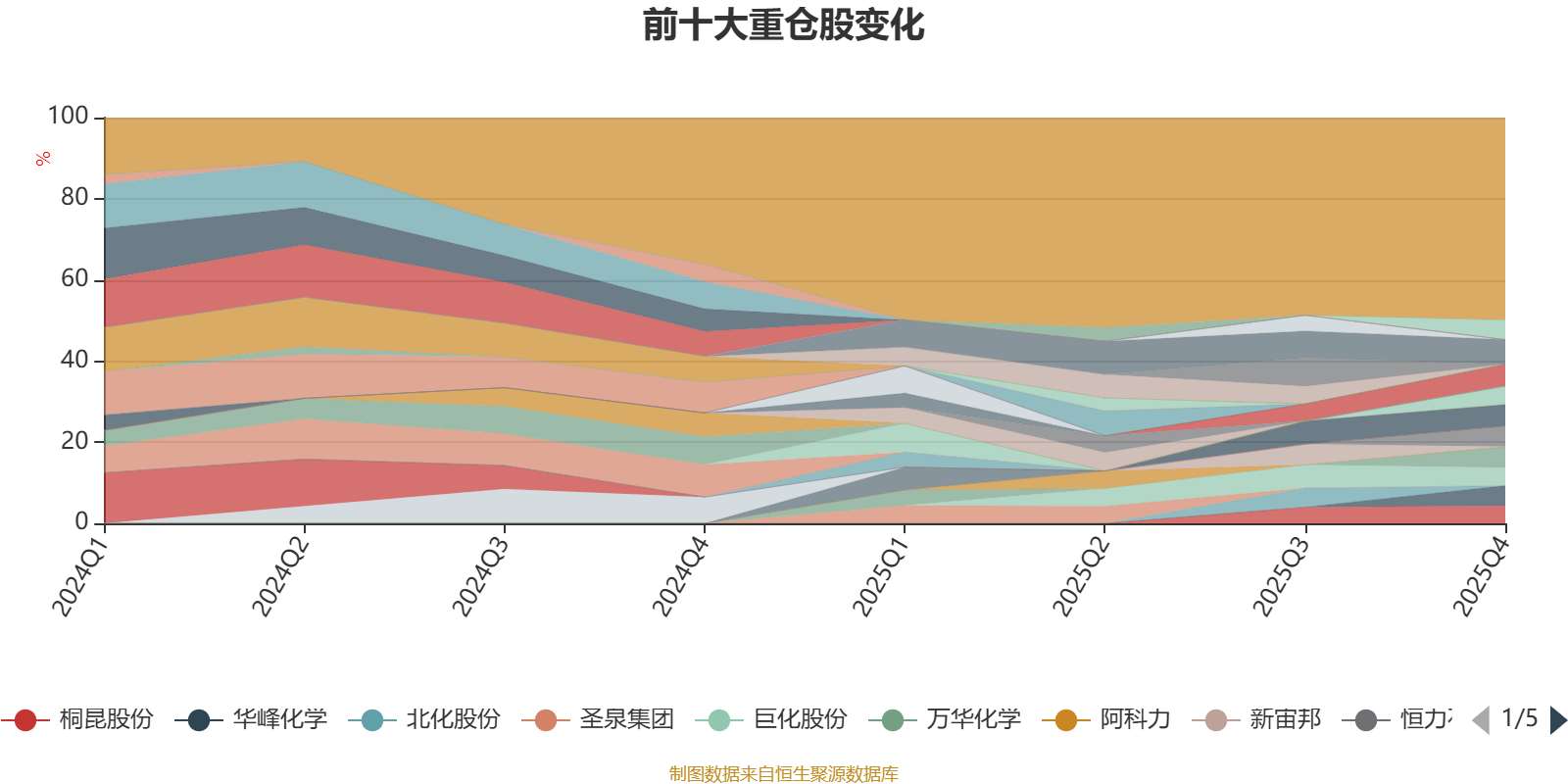 截至2025年末,基金十大重仓股分别是振华股份、兴发集团、鲁西化工、万华化学、恒力石化、华峰化学、新凤鸣、赛轮轮胎、巨化股份、桐昆股份。