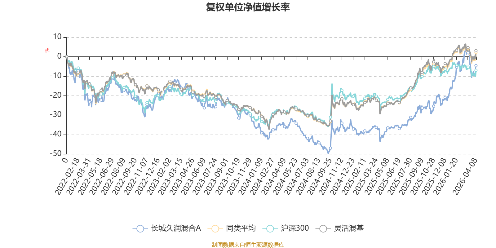 该基金属于灵活配置型基金。截至4月8日,单位净值为1.266元。基金经理是陈子扬,目前管理的3只基金近一年均为正收益。其中,截至4月8日,长城价值甄选一年持有混合A近一年复权单位净值增长率最高,达123.57%;长城久润混合A最低,为68.61%。