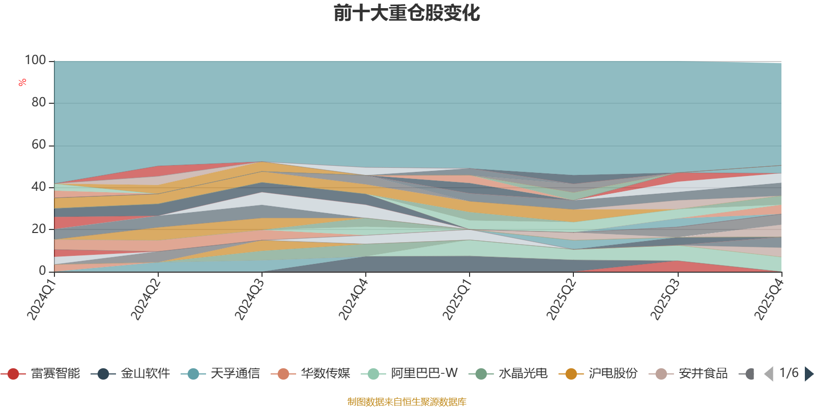 截至2025年末,基金十大重仓股分别是阿里巴巴-W、唯科科技、震裕科技、亿纬锂能、佰维存储、蓝思科技、安井食品、鹏辉能源、领益智造、弘元绿能。