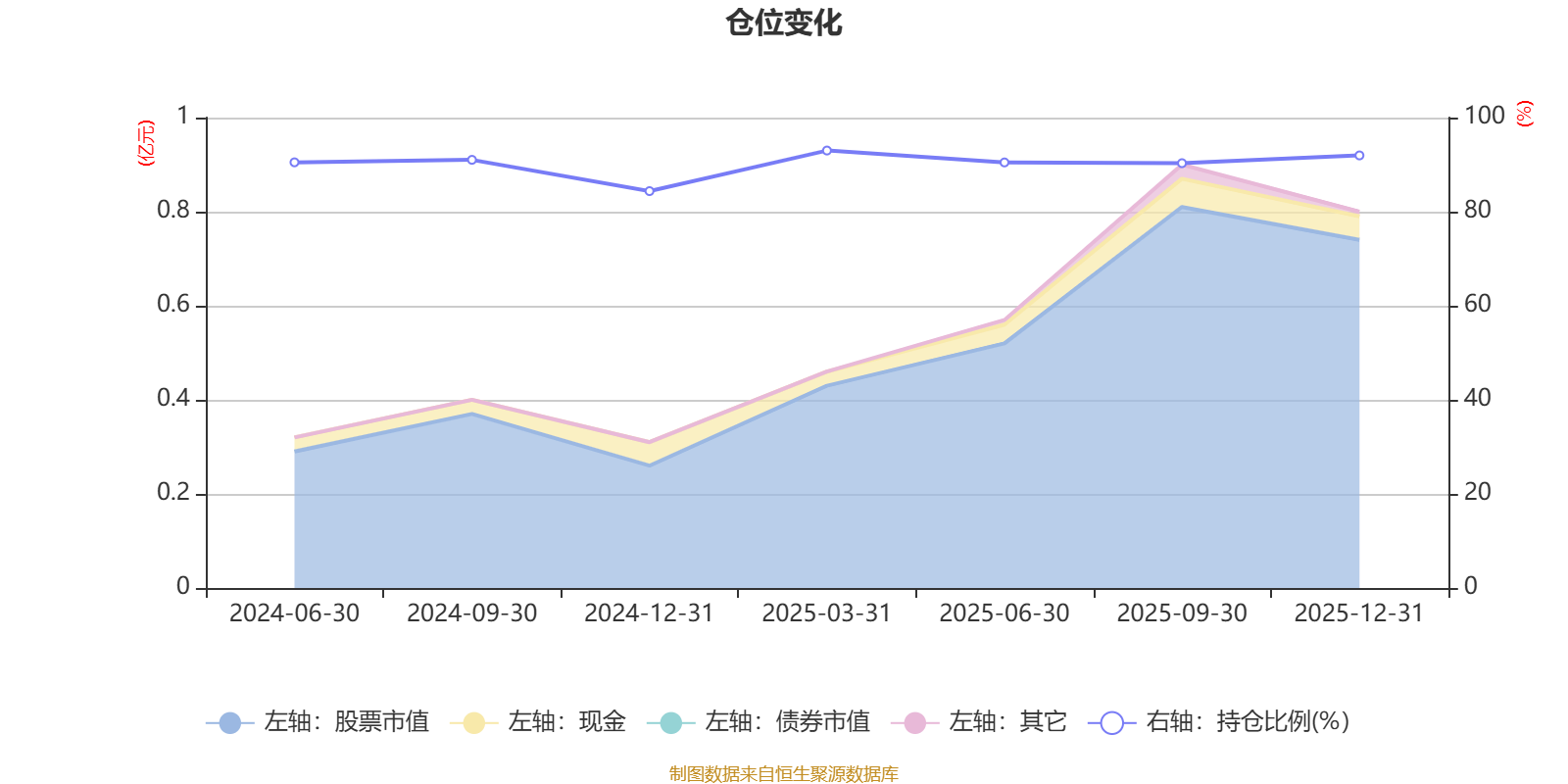 据定期报告数据统计,成立以来平均股票仓位为90.23%,同类平均为86.9%。2025年一季度末基金达到93%的最高仓位,2024年末最低,为84.37%。