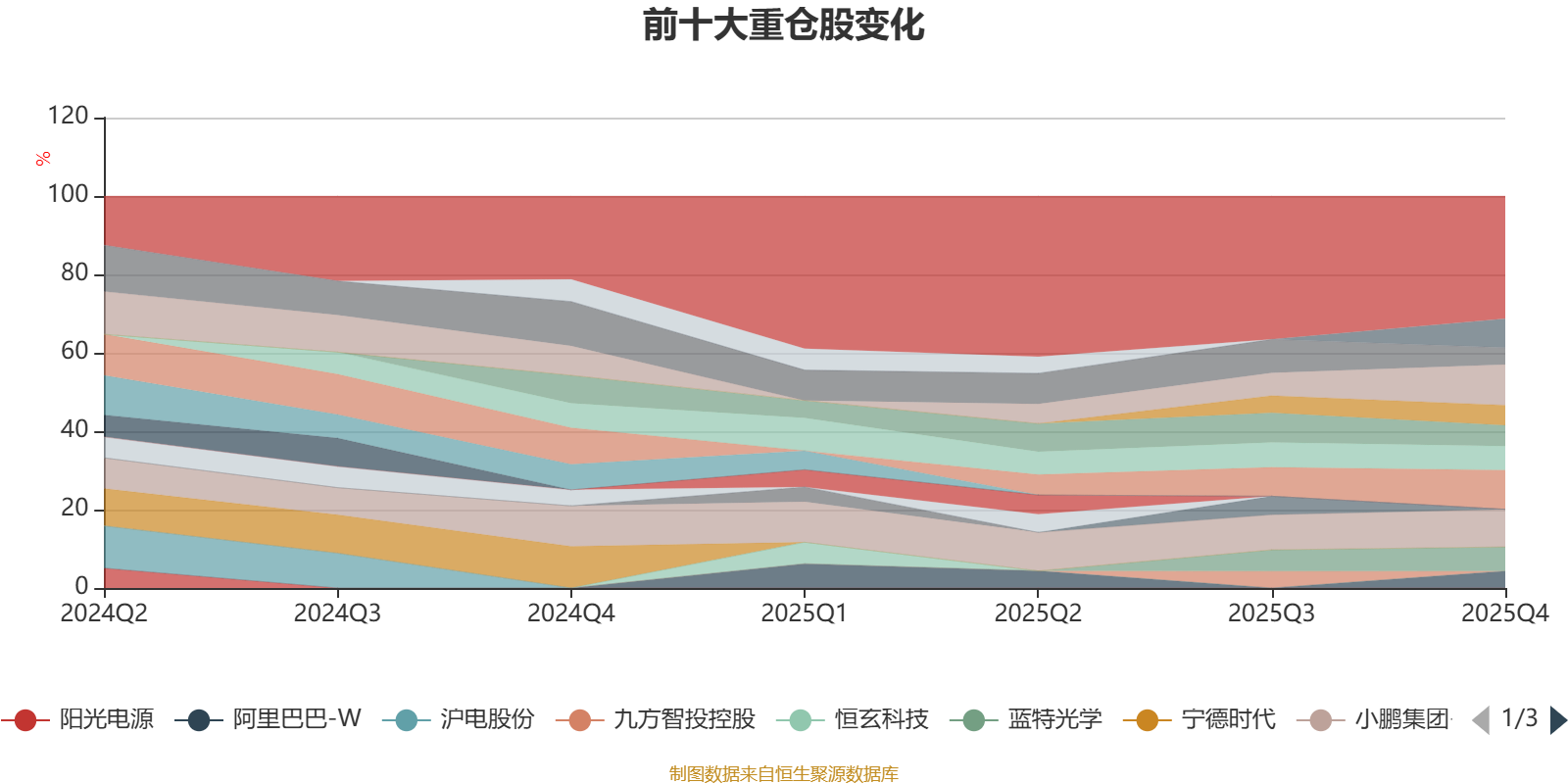 基金管理人在年报中表示,往后看,我们最看好的方向还是AI驱动的大科技制造板块。包括:1)AI智能终端。包括三大新硬件载体:智能车、AR、人形机器人,以及老终端的AI化。2)AI 应用。我们看好云、AI agent、智驾应用落地以及其他垂直领域的应用落地等。随着商业闭环形成,agent 需求进入爆发期,新应用、新场景可期。3)部分景气久期相对持续的AI基础设施。包括光通信领域scale-up带来的增量机会、受益于缺电的燃机和燃料电池等产业链、存储及其配套产业等。除科技外,我们也看好以储能为代表的部分新能源板块以及制造业出海产业里有海外产能储备且产品具备比较优势,能够持续提升市占率的公司。最后,我们也关注未来一年在国内反内卷政策背景下,部分格局相对好的化工子行业里龙头公司从周期底部走出的相应机会等。
