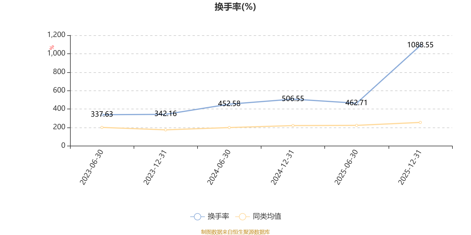 截至2025年12月31日,基金最近一年换手率约1710.89%,持续高于同类均值。