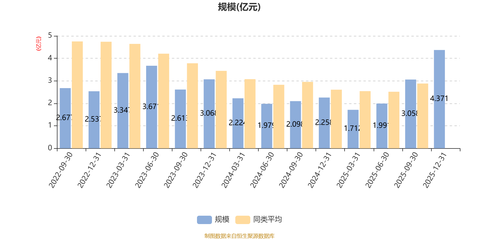 AI基金中欧小盘成长混合A(015880)披露2025年年报,2025年基金利润1.28亿元,加权平均基金份额本期利润0.6615元。报告期内,基金净值增长率为64.32%,截至2025年末,基金规模为4.37亿元。