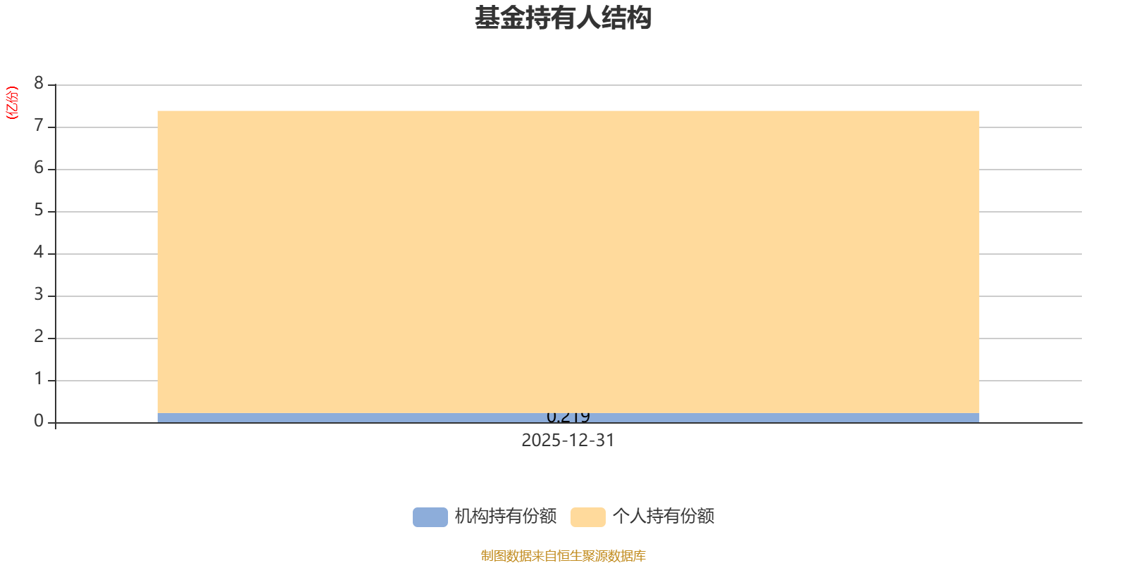 截至2025年12月31日,基金持有人共计5397户,合计持有7.37亿份。其中管理人员工持有238.89万份,占比0.32%,机构持有份额占比2.97%,个人投资者占比97.03%。