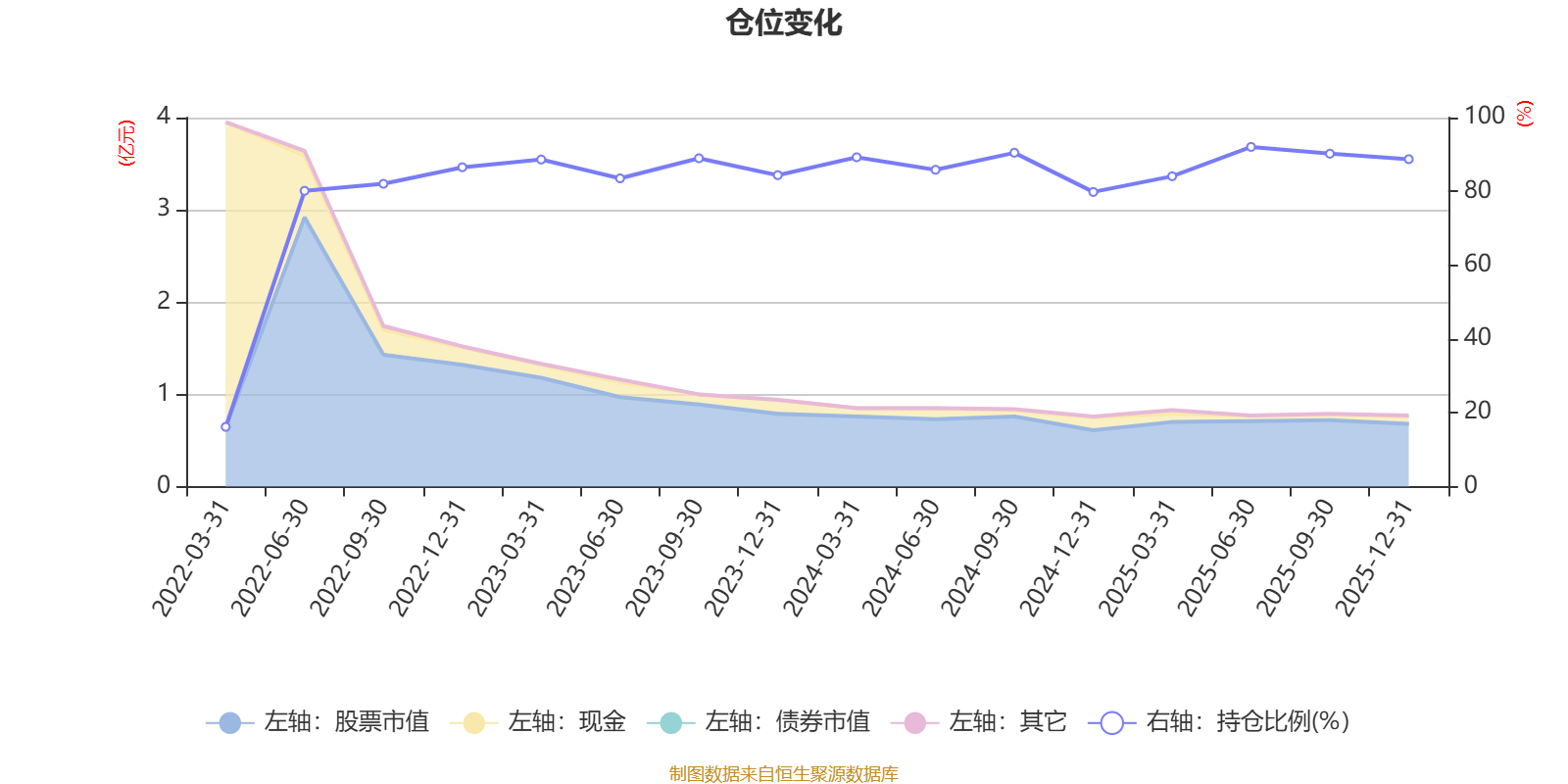 据定期报告数据统计,近三年平均股票仓位为87.17%,同类平均为84.04%。2025年上半年末基金达到92.05%的最高仓位,2022年一季度末最低,为16.18%。